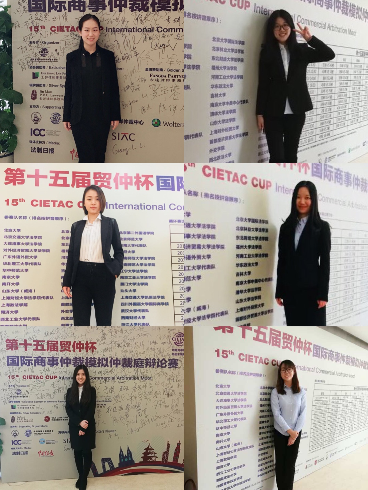 The 2017 UIBE Team is comprised of Wang Boyang and Li Fangning (oralists and junior students enrolled in the undergraduate pilot program) and four researchers, Wang Ziyue, LianDan and Fu Yu (first-year Masters of Law students with their focus on international law, civil law and international dispute settlement, respectively) and Zhang Jingjia (a junior student also enrolled in the undergraduate pilot program). All team members werenew to the field of international arbitration and to moot court competition. Professor Chen Jianling of UIBE Law School, a legal specialist in international arbitration with rich experience in coaching Vis Moot, shared coaching duties with FengKun, a law school graduate student and member of the 2015 winning team and leader of the 2016 runner-up team. Together, they put their heart and soul into tirelessly enhancing the students’ knowledge base and honing their skills inoral pleadings through intensive training and moot practice sessions. They went above and beyond their duties to support and guide the team with unfading enthusiasm, which motivated and brought out the team’s best efforts during the six weeks’preparation time and warranted its final victory.