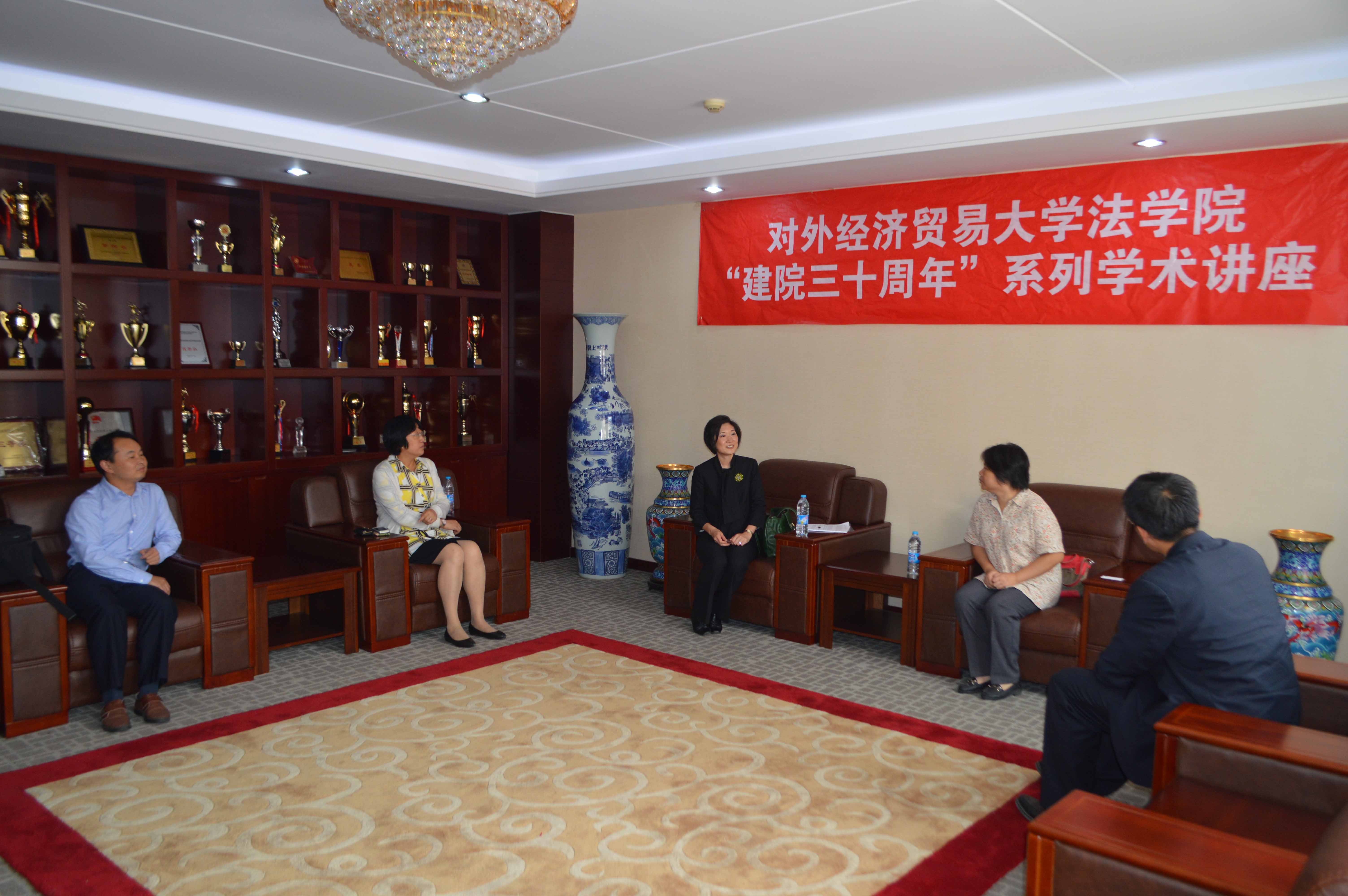 Deputy Dean Gong Hongliu, Professor Ding Ding, Professor Lai Zaoxing and Professor Fujun welcomed Ms. Shawei T. Wang on behalf of Law School and Dean Shi Jingxia. They introduced the basic situation and latest developments of the Law School, and also invited Ms. Shawei T. Wang to Law School for future visits.