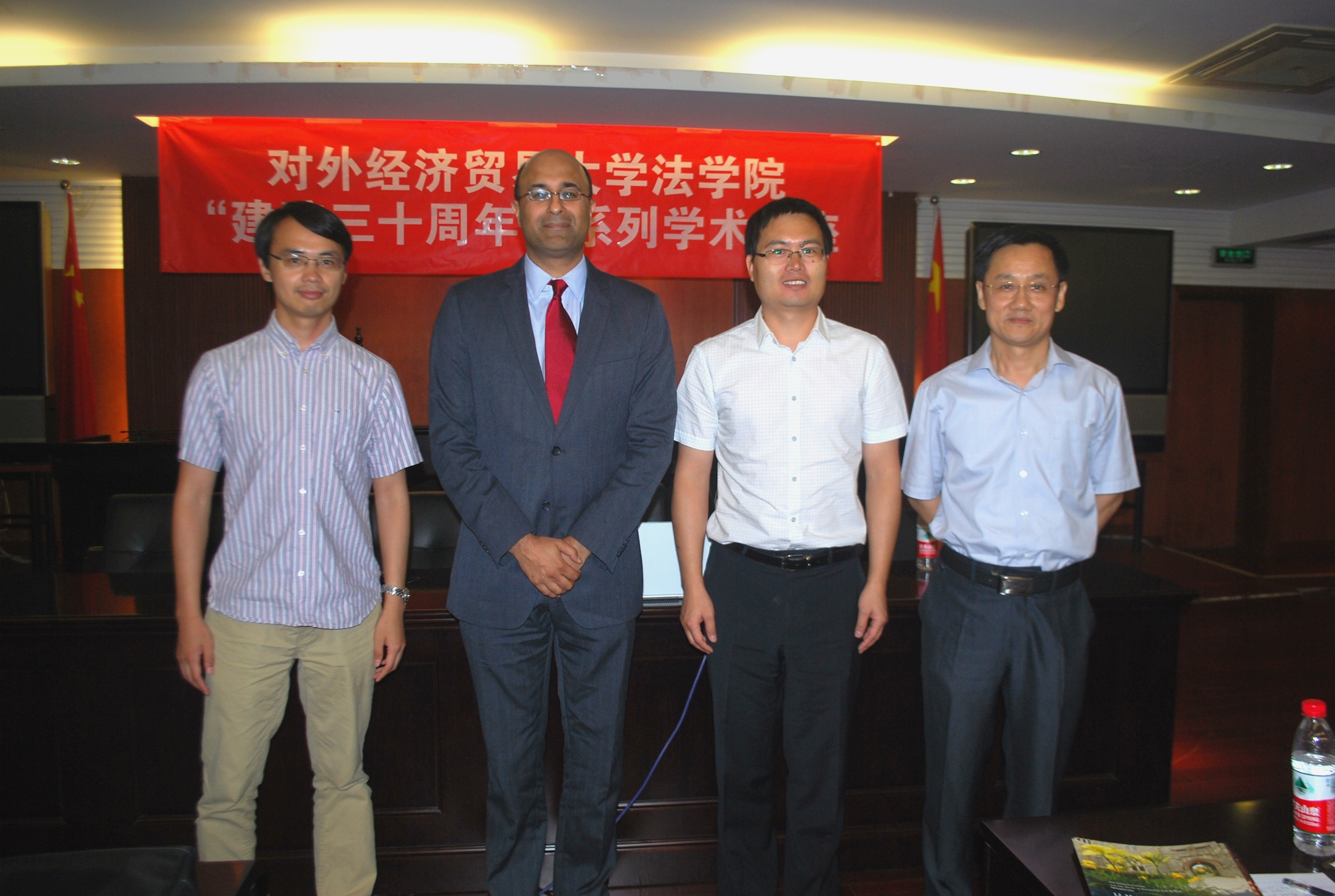 In the evening of September 3rd, 2014, Professor Sachin S. Pandya from the University of Connecticut School of Law visited UIBE Law School and gave a special lecture in the Moot Court room for the students. Deputy Dean of Law School, Professor Su Haopeng, Professor Li Jun and Associate Professor Chen Hangping attended the lecture.
