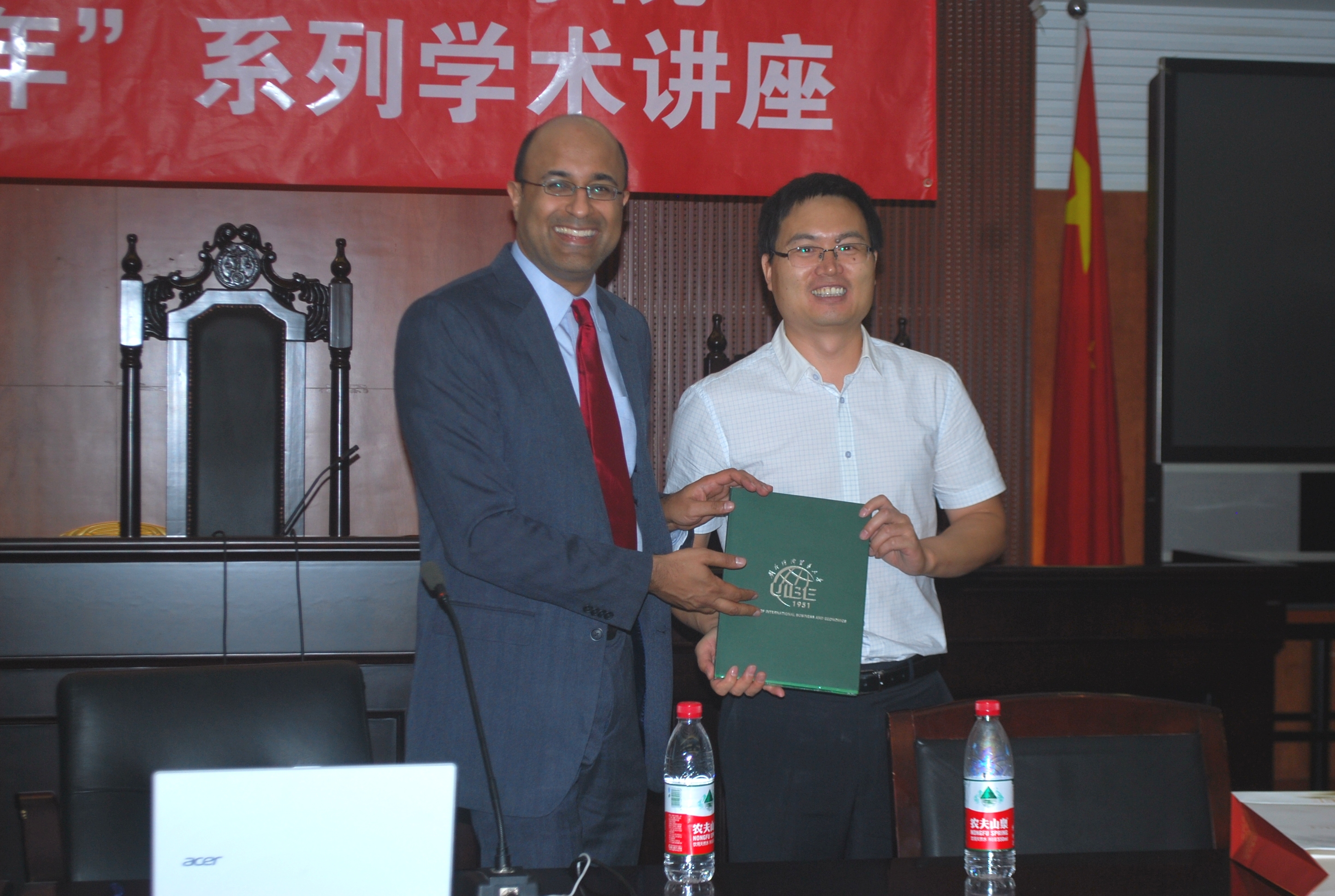 Professor Pandya was invited to Beijing by the AQSIQ in order to participate in our academic activities in “QualityMonth”. At the invitation of Professor Li Jun of the Law School, he made a special trip to UIBE Law School to give a featured lecture for our students. The theme was: “U.S. Product Liability Law and Product Safety Law”.