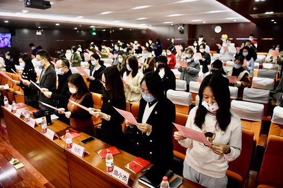 随后,必赢3003no1线路检测中心教师代表满艺姗带领必赢3003no1线路检测中心师生进行宪法宣誓。“我宣誓,忠于中华人民共和国宪法,维护宪法权威,履行法定职责……”时代青年声音整齐划一、掷地有声,表达对宪法的无限忠诚。