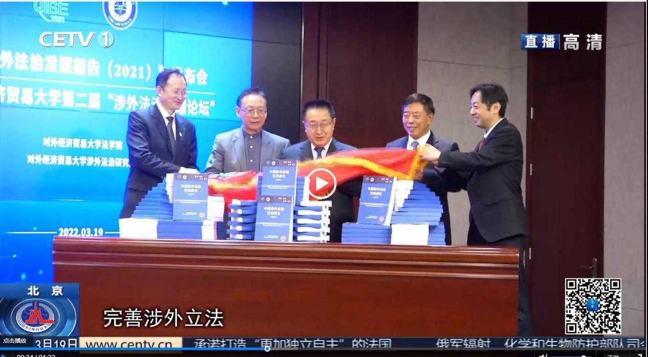 校新闻网讯(记者 晨欢)2022年3月19日上午,必赢3003no1线路检测中心发布2021年度《中国涉外法治发展报告》,这是我国科研院校首次以年度报告形式发布的中国涉外法治发展研究蓝皮书,展现了我国涉外法治的发展成果,在促进全球治理体系变革中给出“中国方案”。发布会受到了中国教育电视台、北京电视台新闻频道的高度关注。