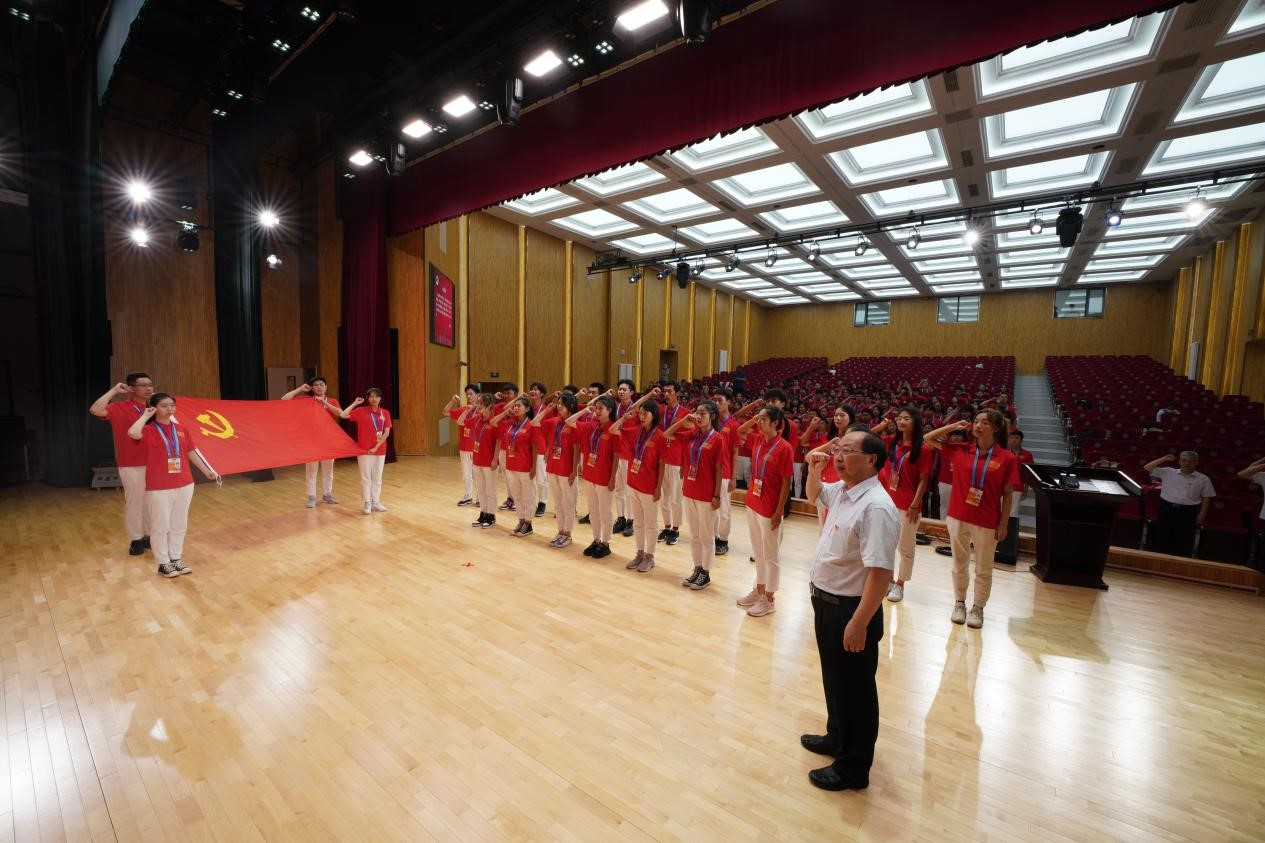 大连理工大学机关党委组织新党员入党宣誓、老党员重温入党誓词。
